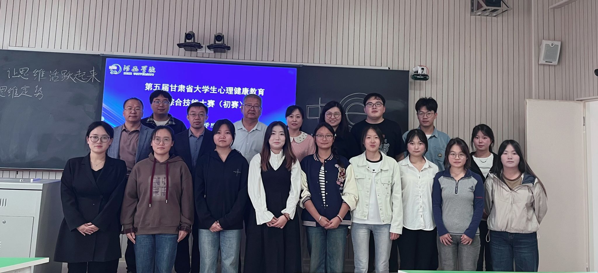为贯彻落实《教育部关于加快建设高水平本科教育 全面提高人才培养能力意见》(教高〔2018〕2 号),《甘肃省教育厅关于公布 2025年省级大学生学科专业竞赛项目的通知》精神,切实推进高水平人才培养体系建设,提高人才培养质量,普及心理学科学文化知识,并引导学生积极参与专业实践,提高问题解决能力,助力国家社会心理服务体系建设。2025年9月20日,心理学教研室在实训楼411组织并开展了第五届甘肃省甘肃省大学生心理健康教育综合技能大赛校级选拔赛。比赛邀请雒焕国教授、段宝军教授、安桂花教授、任亮宝教授、王琴超博士担任评委,教学组比赛的同学围绕学习适应、压力管理和情绪调节以及自我认知等方面,以学生为主题,通过讨论、游戏等形式展开;咨询组的同学们运用咨询的方法与技巧,模拟了咨询过程。赛后各位评委老师结合自身及指导学生参赛的经验,围绕讲课、说课、咨询展示、个人形象及注意事项等方面进行了指导。通过初赛,最终选拔出5名选手参加省级复赛。
