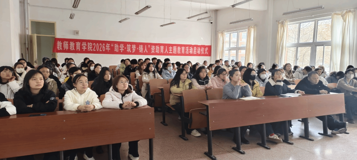 为深入学习贯彻习近平总书记关于教育的重要论述和党的二十大、二十届历次全会精神,进一步强化资助育人体系建设,健全资助育人长效机制,充分发挥资助工作在引导学生努力学习、积极进取,促进学生德、智、体、美、劳全面发展过程中的育人功能,3月27日下午,教师教育学院在八教108教室开展2026年资助育人主题教育活动启动仪式,学院辅导员和学生代表共100余人参加活动。